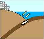 2.プレートがもぐり込む時、日本列島を引きずり込む。 |